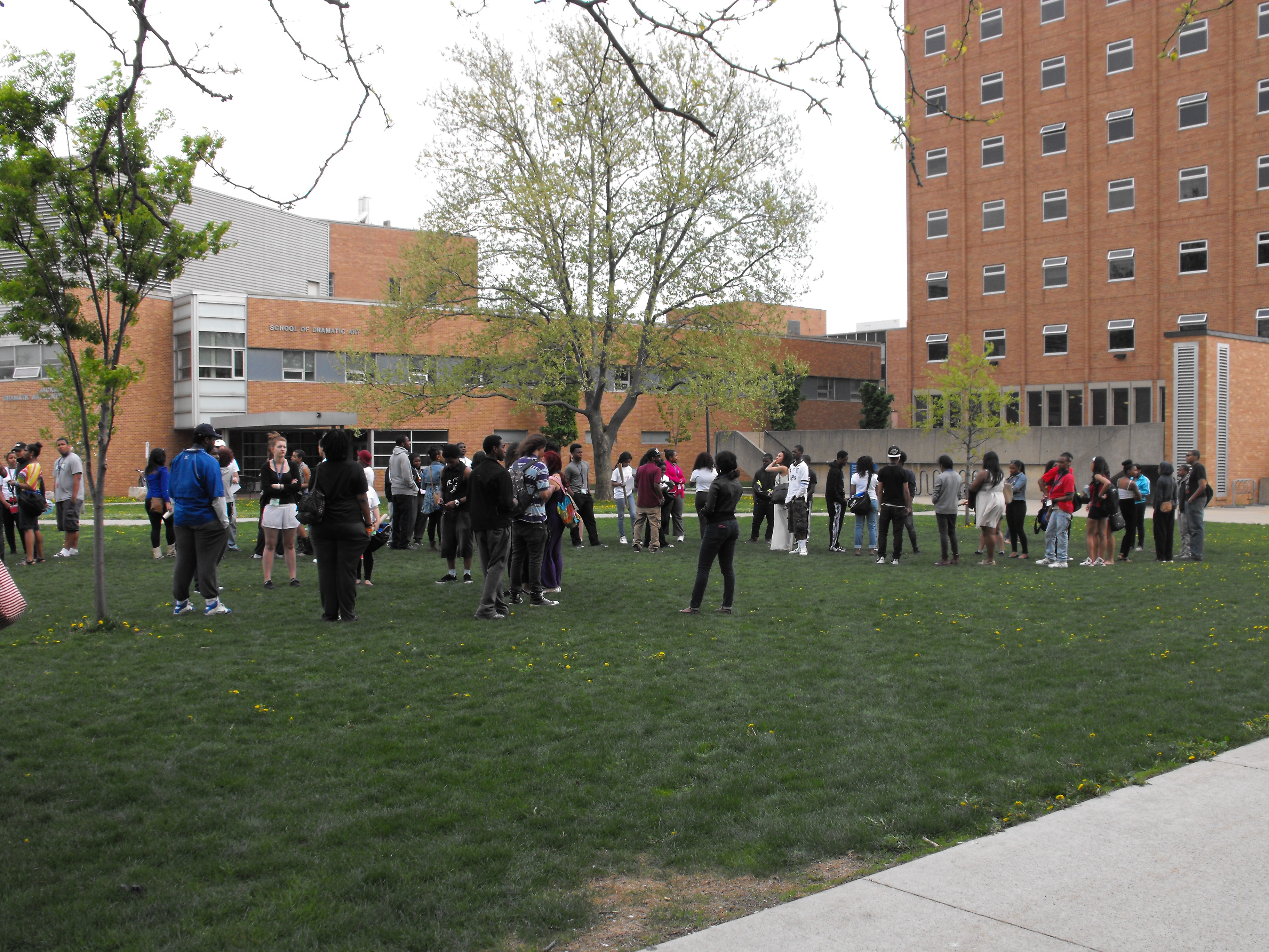 The 4 hour bus ride from Toronto to Windsor was greeted by energetic University of Windsor students and Dr Andrew Allen with bags and t-shirts for the group. Students split into groups mixed between Toronto, Windsor and Detroit schools. At first complaints of not knowing anyone turned to inseparable new friendships. Students got to work in groups on arts based expressions and presented that evening in spoken word, poetry, dance, art and drama. Meals provided were excellent, full of choice and to the appreciation of the students allowed for seconds. A teacher in the TDSB, Dave Watkins, who has been with the conference from the start welcomed the students. He spoke about the struggles as a person of African Diaspora himself, faced and challenges of the media in defining black youth. He encouraged students by saying “Only be defined by what you do and who you want to be. You will tell people who you are, and tell people how you want to be treated. “. He also spoke about the importance of having allies and friends of all backgrounds as people from your own group may not always have your best interests in mind.