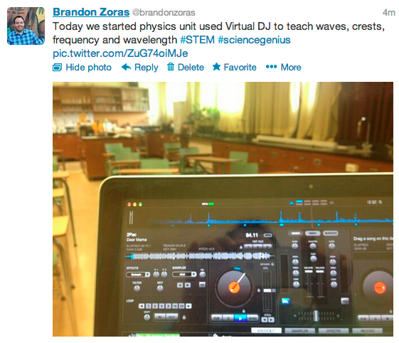 Today we started the optics unit in Grade 10 Science and what better way to introduce the electromagnetic spectrum than to show Virtual DJ to explain terms like crests, troughs, wavelength, frequency, etc. Students got to change frequency and match wavelengths in order to mix a song to sound good! No one likes when beats clash and now they know why based on physics!