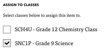 8)Once complete, I assign it to my class back at the dashboard page.