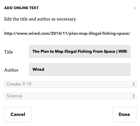 I would like to see the ability to remove part of the article from an online source. For example some articles have ads or extra information that become trapped in the article, the ability to modify the body text of an article would be useful. Got stuck? The help centre is very informative on how to do all the functions within the site. From adding students, curating content to importing your own articles there is help for it all!